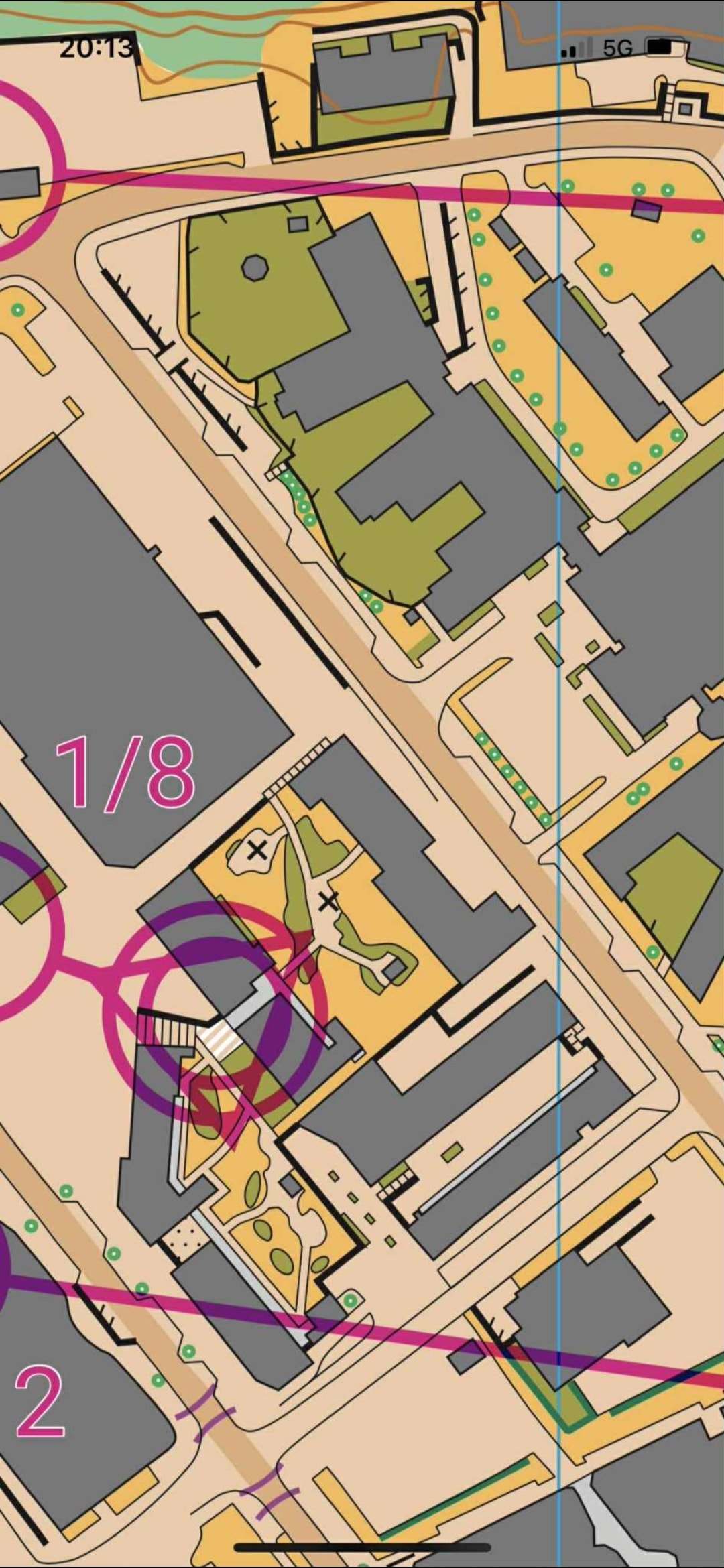 3 løyper: kort (1,2 km) mellom ( 2 km ) og lang (3 km) Er den lange for kort, kan en av de andre løypene taes som nedjogg